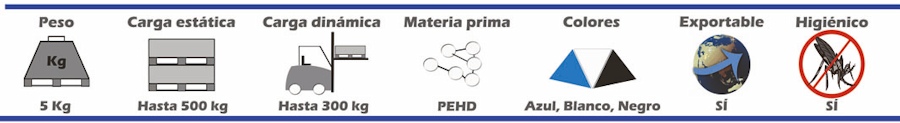 Diseñado para cargar más de 500 kilogramos, plataforma de cuatro entradas, ligero y apilable, ahorro del espacio. Ideal para las cadenas de producción, los envíos aéreos y expositores en centros comerciales.