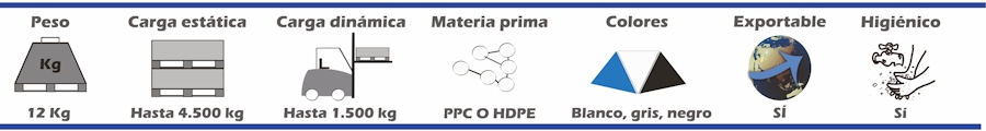 Para proporcionar mayor estabilidad y mejor manejo, existe la posibilidad de añadir hasta 10 tacos antideslizantes tanto en la parte superior como inferior de la superficie del palet.