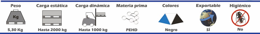 Palet de plástico. Encajable 1200 x 800 x 155. Peso 5,30 kilogramos.