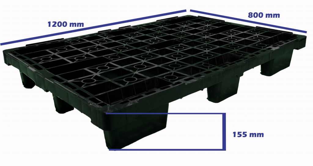 Palet de plástico. Medidas 1200 x 800 x 155.